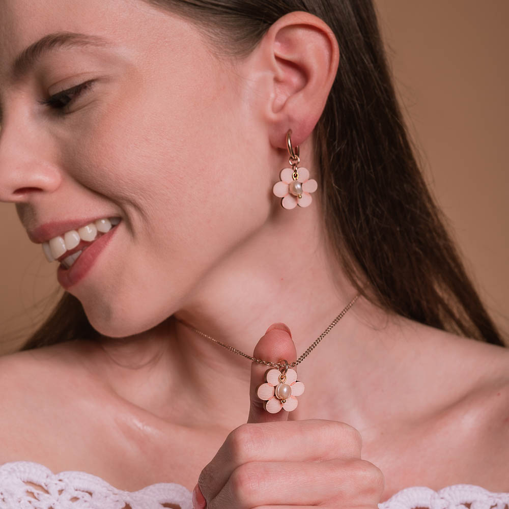 UNELMA korvakorut yllä on lupa unelmoida kepeitä kesäunelmia. Unelma korvakorut ovat pirteän väriset kesäkukkaset, joita koristavat heleät makeanvedenhelmet. Valitse suosikkisi erilaisista kiinnitysvaihtoehdoista.